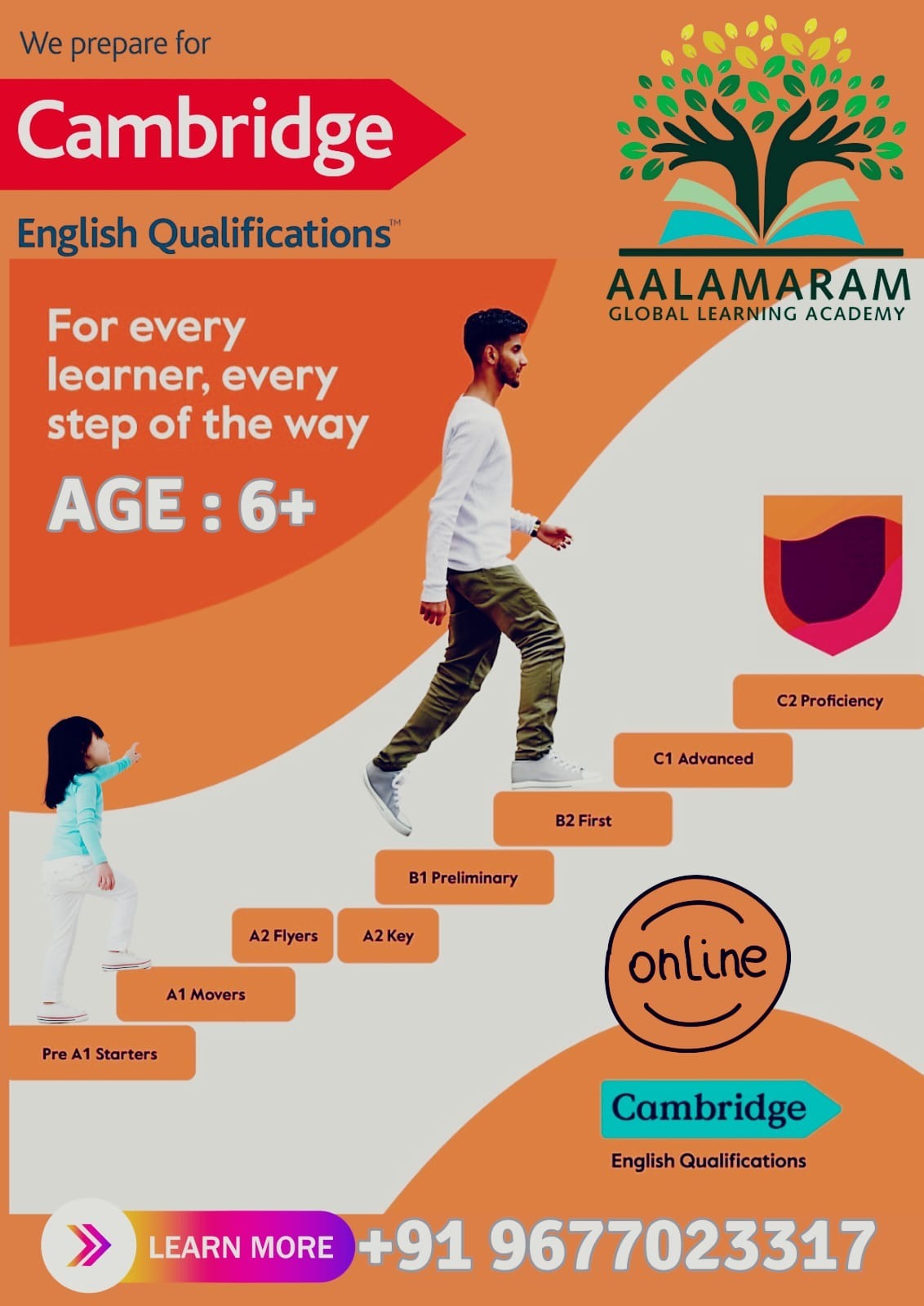 Aalamaram Global Learning Academy is dedicated to preparing learners for Cambridge English Qualifications, supporting students every step of the way. Whether you're just beginning or aiming for advanced proficiency, we offer comprehensive courses tailored for all age groups 6 and above.