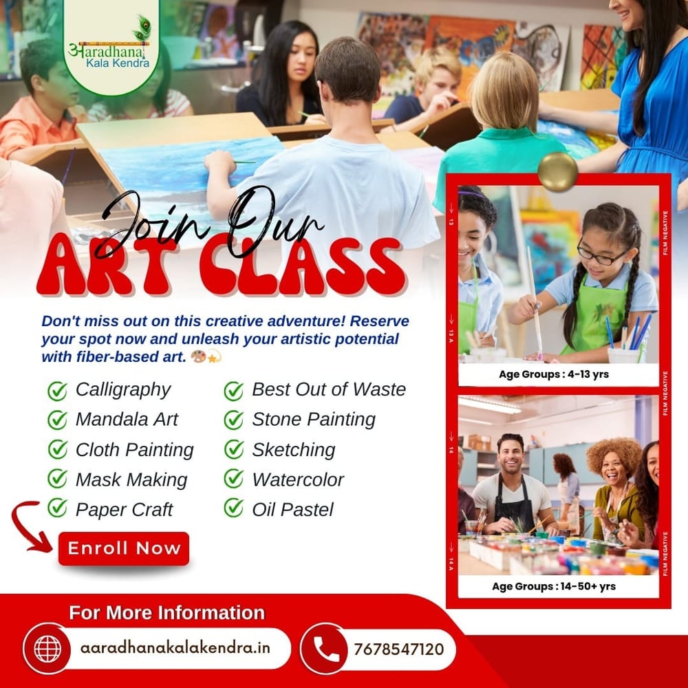 Discover your creative side with exciting art classes! Whether you're a young beginner or an experienced artist, our diverse range of courses is designed to inspire and develop your artistic skills. From vibrant watercolor and oil pastel paintings to innovative fiber-based art, calligraphy, mandala art, and eco-friendly waste art, there's something for everyone.