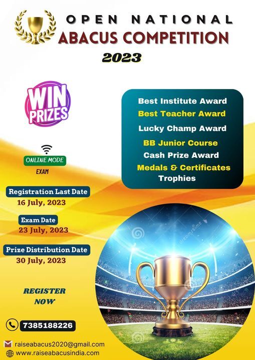 đ Summary: Participate in the National Abacus Competition! Great awards like cash prizes, medals, certificates, and trophies await!