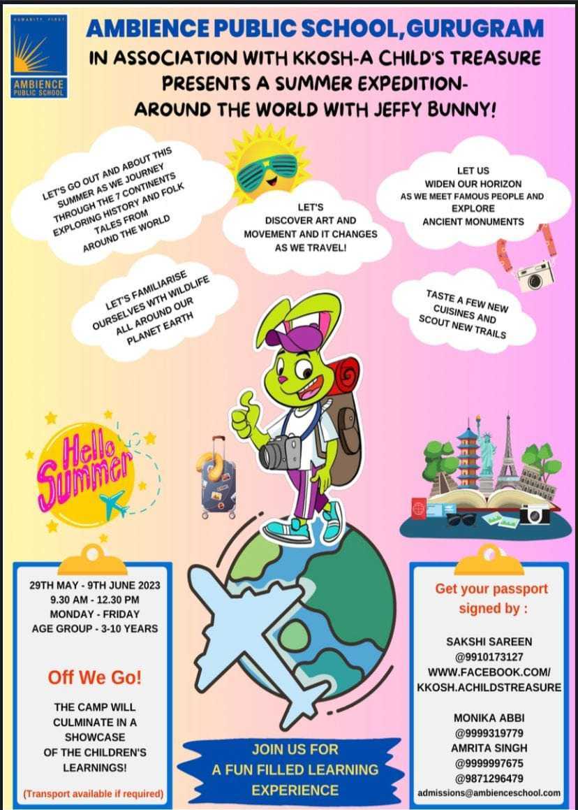 đ đ This summer, Ambience Public School invites your kids to a special Summer Expedition filled with fun, learning, and adventure! Ideal for children to enjoy their vacations while gaining new experiences. đđ
