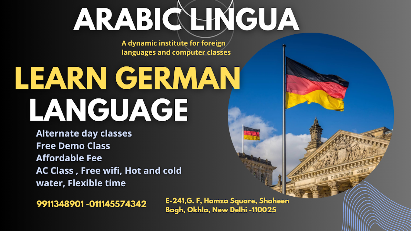 Summary: Discover the benefits of bilingualism! Enroll your child in Arabiclingua's German language course, featuring alternate day classes, a free demo class, and affordable fees with top-notch facilities including AC classrooms and free WiFi.