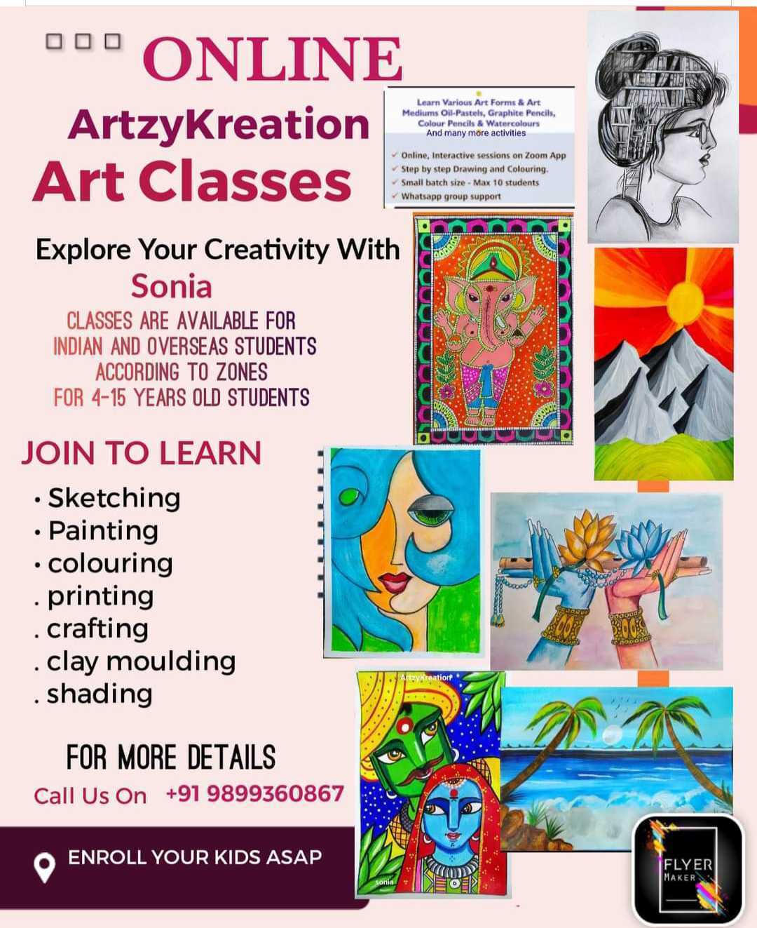 Art Classes by Artzy Kreation đ Highlights: âď¸ Sketching đ¨ Painting đ Colouring đ¨ Printing đ Crafting đş Clay moulding đ Shading