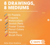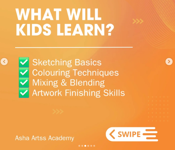 Give your little artist the chance to explore creativity with our fun and interactive drawing classes designed specially for kids . Over the course of 8 sessions, children will create 8 unique drawings while exploring 8 different color mediums such as oil pastels, crayons, watercolors, sketch pens, poster colors, pencil colors, acrylics, and brush pens. Kids will also learn sketching basics, coloring techniques, blending and mixing, along with finishing skills to make their artwork stand out. These sessions aim to build creativity, improve focus, and enhance imagination while ensuring every child enjoys the process of making art.