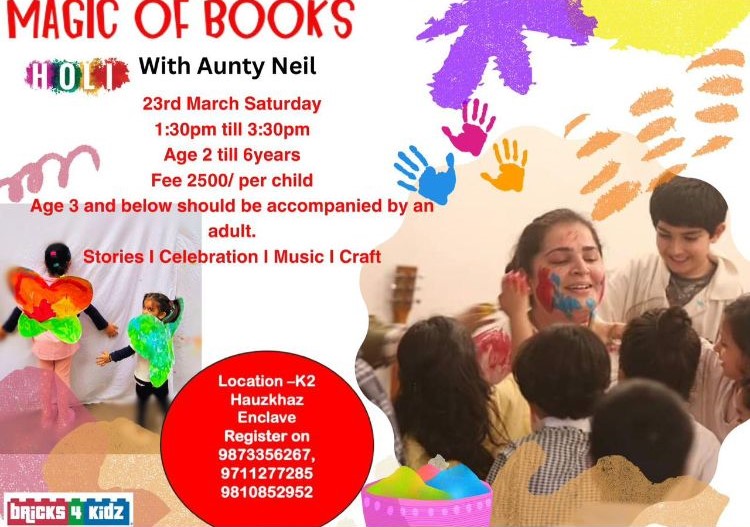 Message: Don't miss out on a magical experience! Enroll your child today in Bricks4 Kidz's special Holi event with Aunty Neil and discover the magic of books and fun! đđđ¨đś