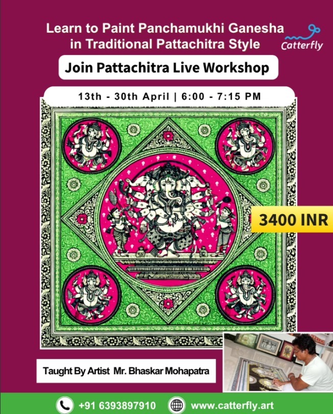 Explore the beauty of traditional Indian folk art through a live Pattachitra painting workshop focused on Panchamukhi Ganesha. Guided by artist Bhaskar Mohapatra, participants will learn the intricate detailing, patterns, and techniques that make Pattachitra art unique.