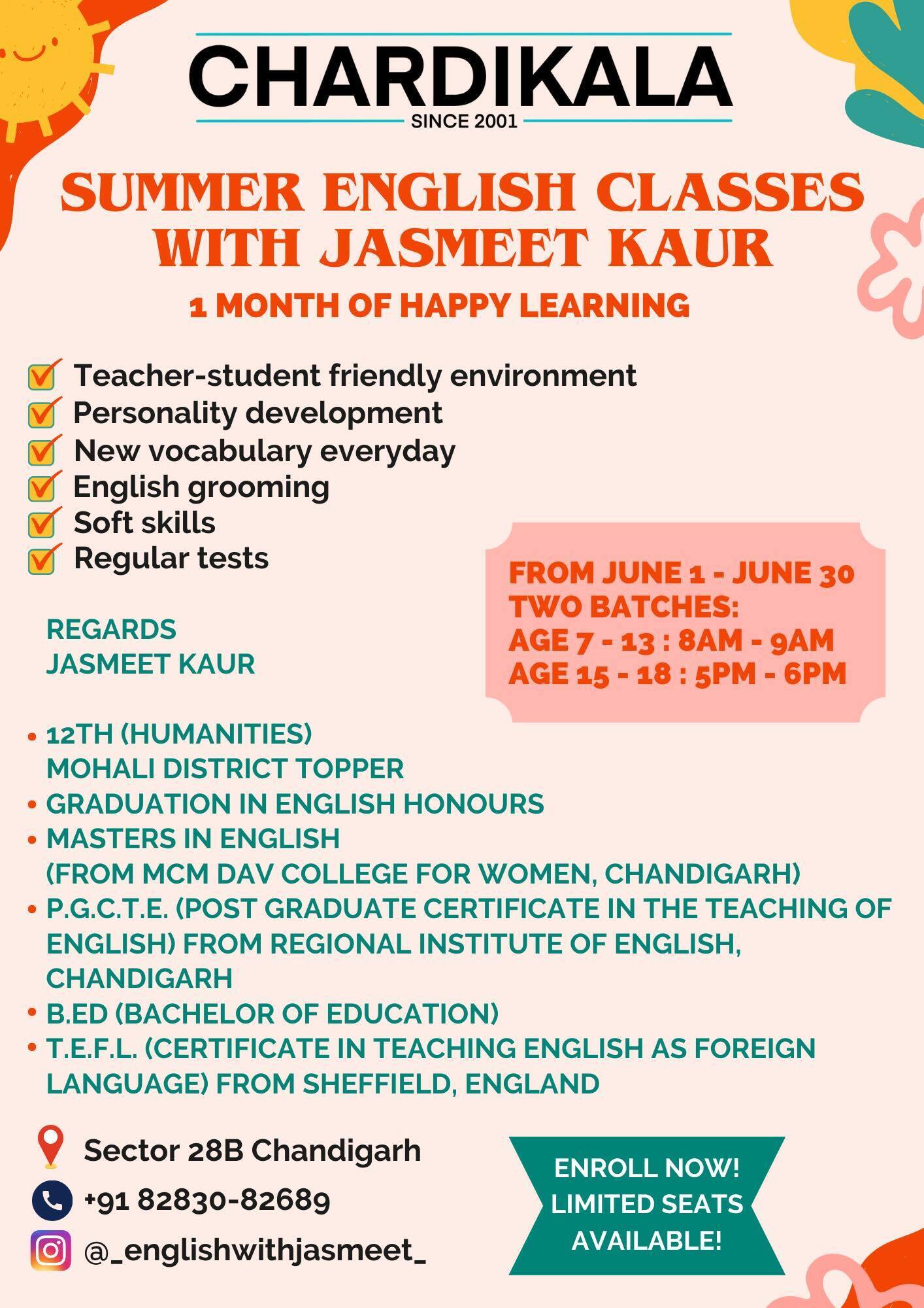 Chardikala Hosted Summer English Classes With Jasmeet Kaur For Kids Enroll Your Child