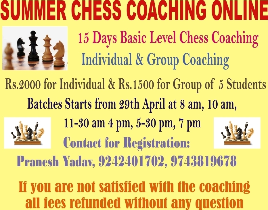 Chess Coaching Online Hosted by Pranesh Yadav