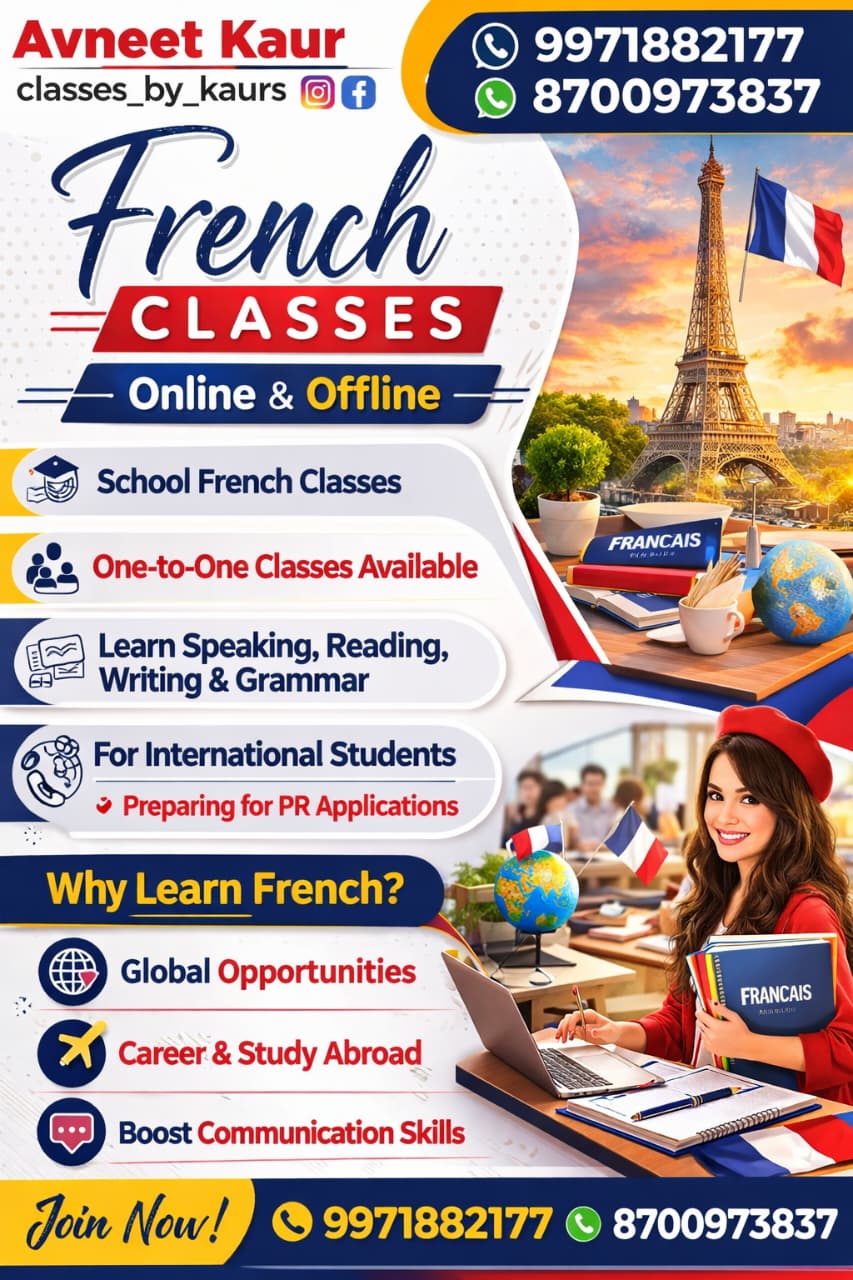 Guided by Avneet Kaur, the program covers speaking, reading, writing, grammar, and overall communication in French. One-to-one classes are also available for learners who prefer personalised attention and flexible learning.The classes are suitable for students studying French in school, individuals preparing for study abroad opportunities, international students, and those applying for PR programs.