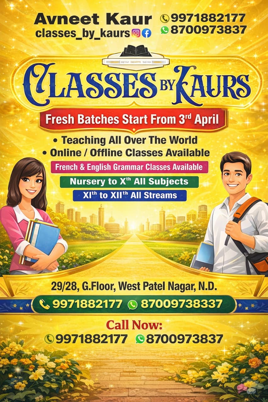 Fill in your details below and Classes By Kaurs, Delhi NCR will reach out to you.