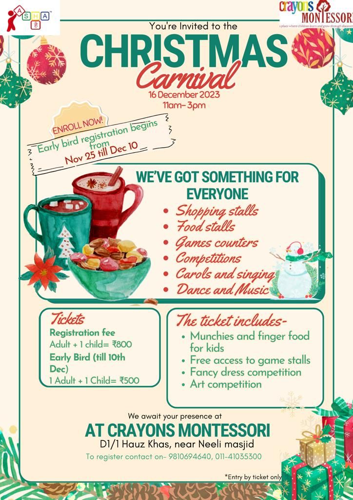 Summary: Enjoy a festive day filled with shopping, games, dance, music, and competitions at the Crayons Montessori CHRISTMAS Carnival đđ. Fun for the entire family with special activities and food included for the kids.