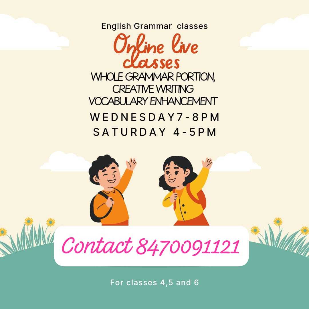 These live online English Grammar classes are specially designed for childern. The program covers the complete grammar syllabus along with modules on creative writing and vocabulary enhancement. Classes are conducted twice a week, focusing on conceptual clarity, practical usage, and skill-building in a structured and engaging format.