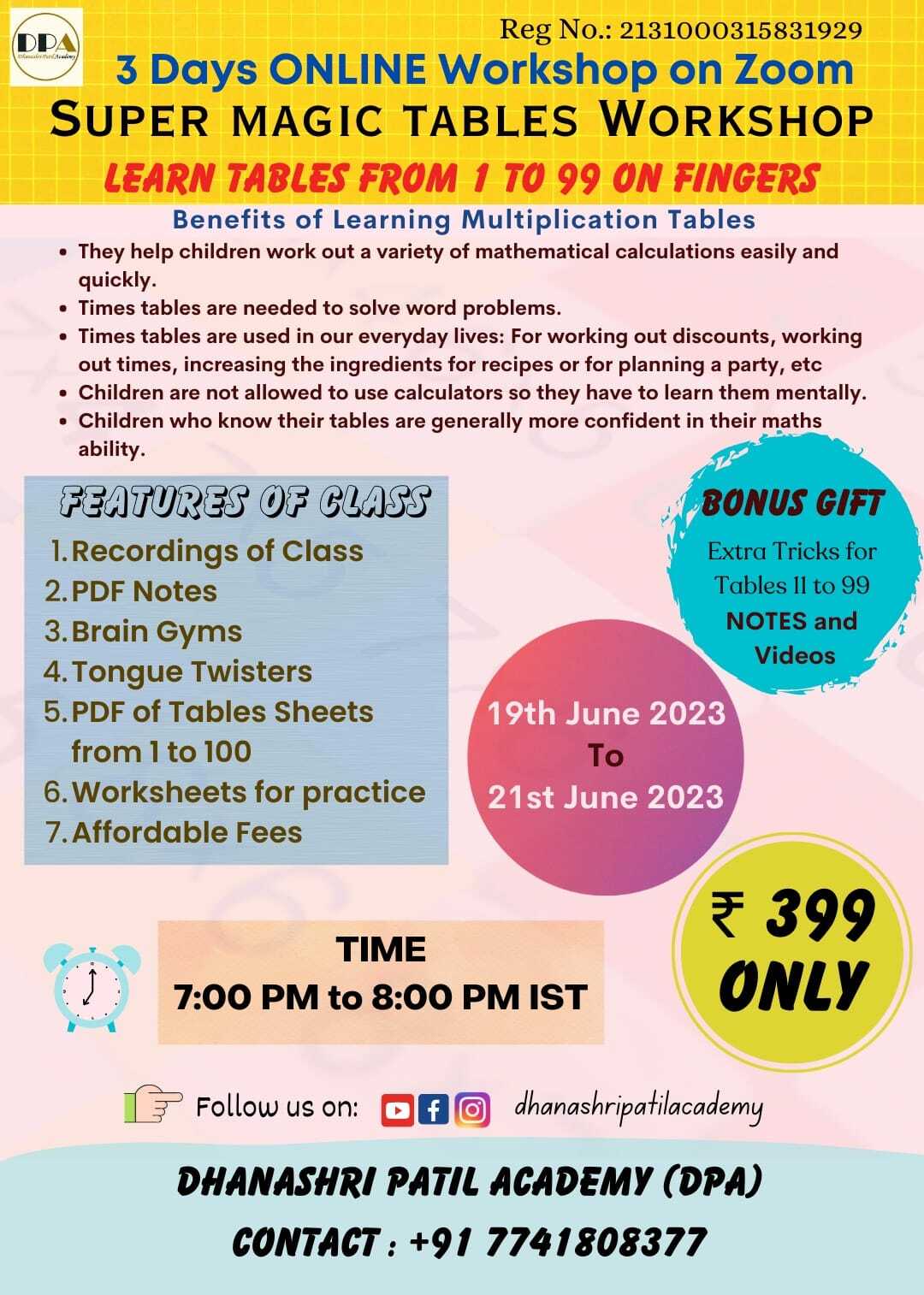 đ Dhanashri Patil Academy Hosted Super Magic đŠ Tables Workshop For Kids đ§đŚ Enroll Your Child Today!