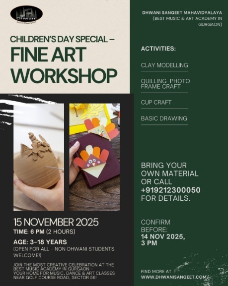 Join us this Children's Day at Dhwani Sangeet Mahavidyalaya, the best music and art academy in Gurgaon, for our special Fine Art Workshop!