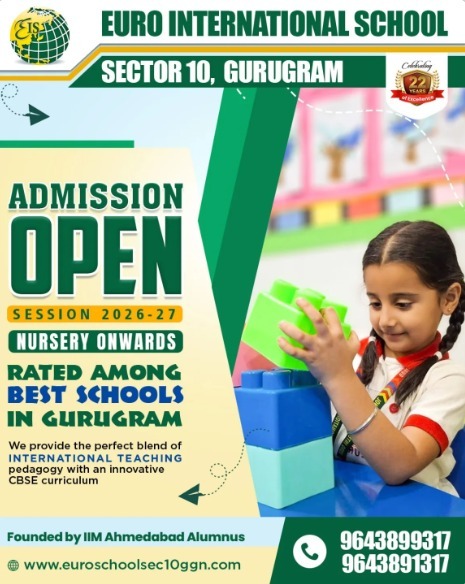 Euro International School, Sector 10, Gurugram, is a premier educational institution dedicated to nurturing young minds and shaping future leaders. Recognized as one of the best schools in Gurugram, we offer a seamless blend of international teaching methodologies combined with an innovative CBSE curriculum, ensuring a holistic learning experience. Founded by an IIM Ahmedabad alumnus, our school provides a stimulating environment where curiosity is encouraged, creativity is celebrated, and every child is empowered to discover their true potential.