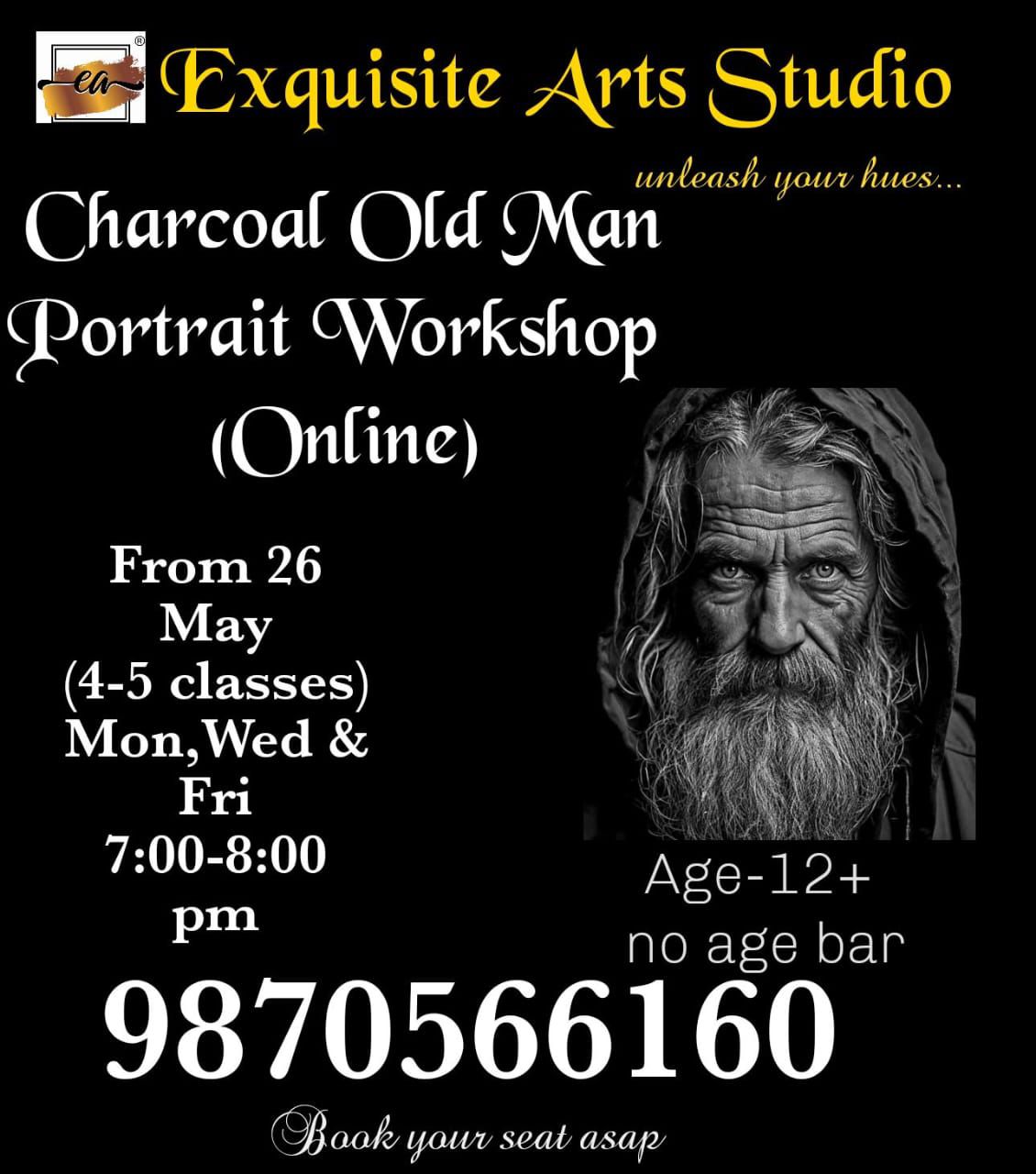 Join Exquisite Arts Studio for an inspiring Charcoal Portrait Workshop where you’ll learn to create a realistic portrait of an old man using the expressive medium of charcoal. Guided by an experienced instructor, this online class will take you step by step through sketching, shading, and detailing techniques to bring character and depth to your portrait.