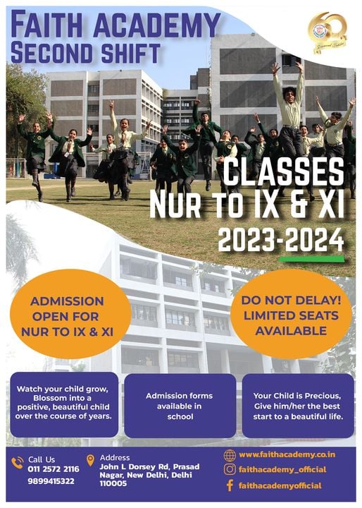 Summary: Join Faith Academy's Second Shift offering classes from nursery to IX & XI. Witness the phenomenal growth and development of your child in a nurturing environment.