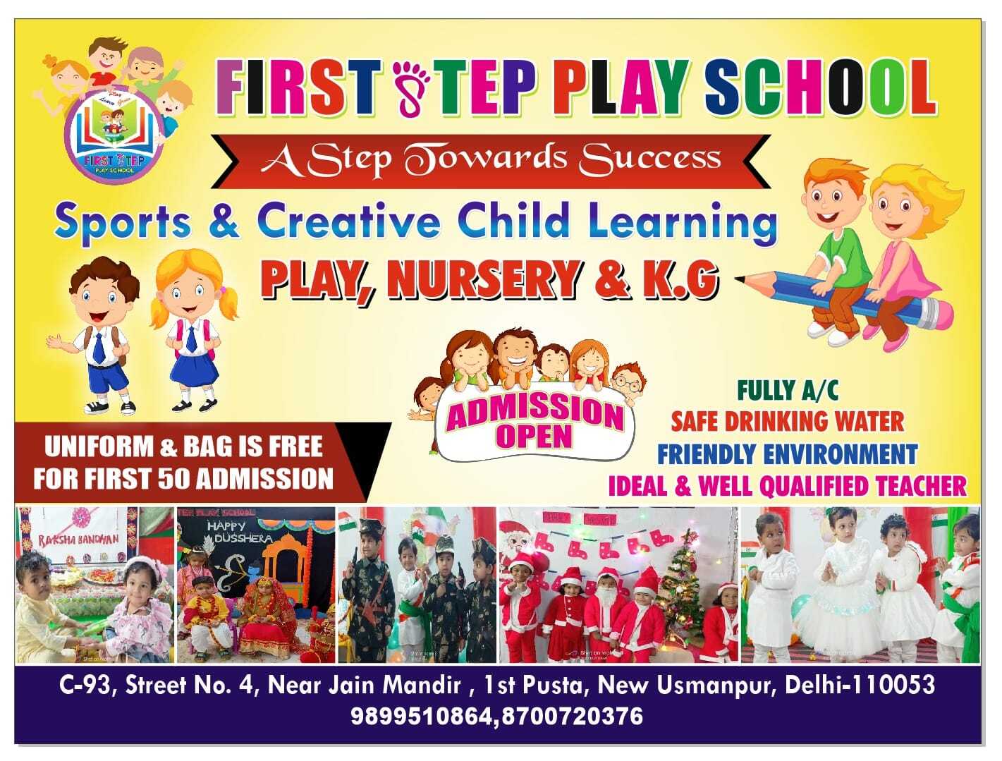 Summary: Enroll in First Step Play School đŤ for a mix of sports đ and creativity đ¨. Hurry to get a free uniform đđ for your child with the first 50 sign-ups!