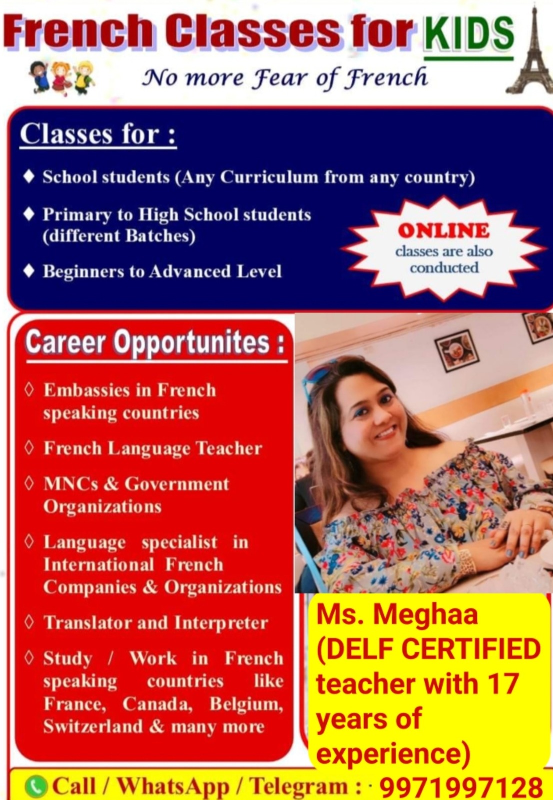 Fill in your details below and "French Classes By Meghaa", Delhi NCR will reach out to you.
