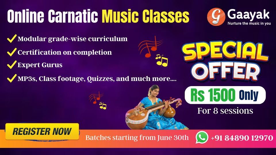 Summary: Unlock the secrets of Carnatic music with Gaayak's modular grade-wise curriculum đźđ. Each course concludes with a certificate đ , and is taught by expert gurus at affordable prices đ¸.