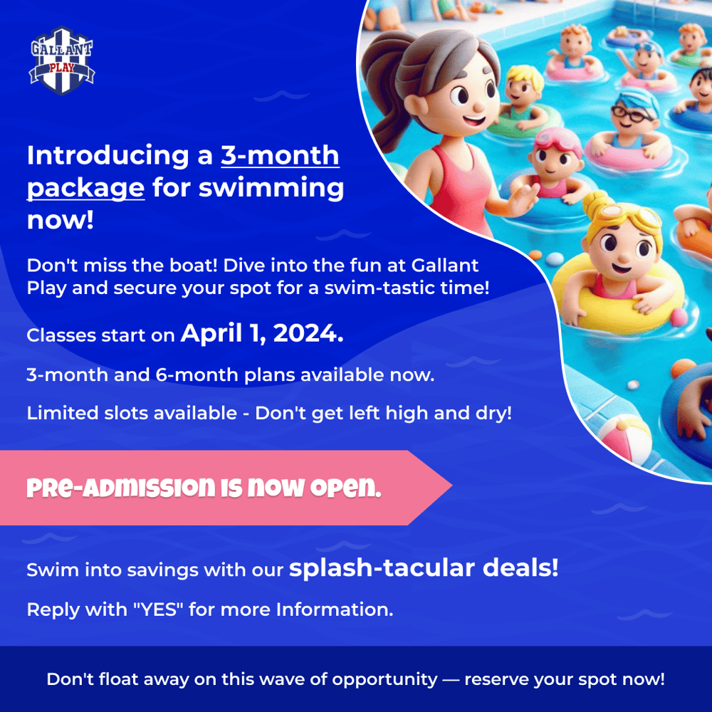 Summary: Enroll in a 3 or 6-month swimming package at Gallant Play starting April 1, 2024. Enjoy limited-time deals and secure your