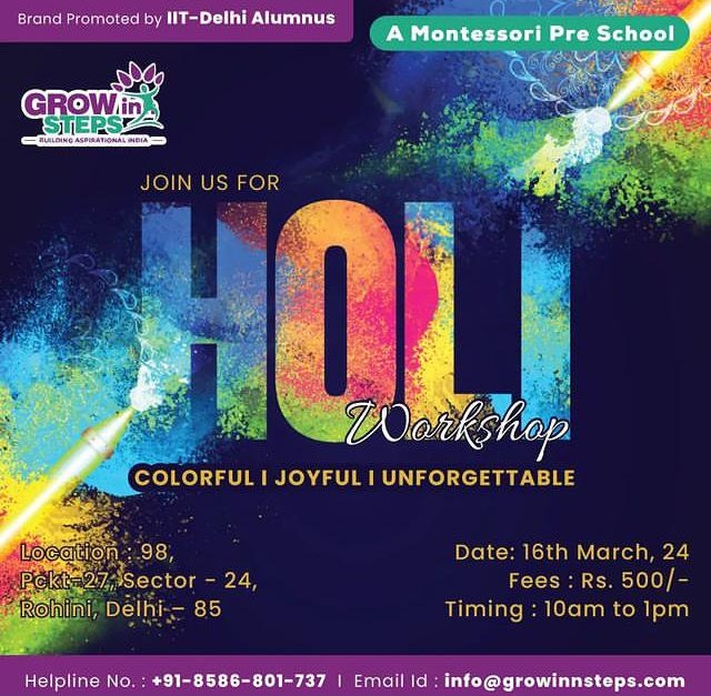Grow Inn Steps hosted a Holi workshop for kids. Enroll your child now! đ