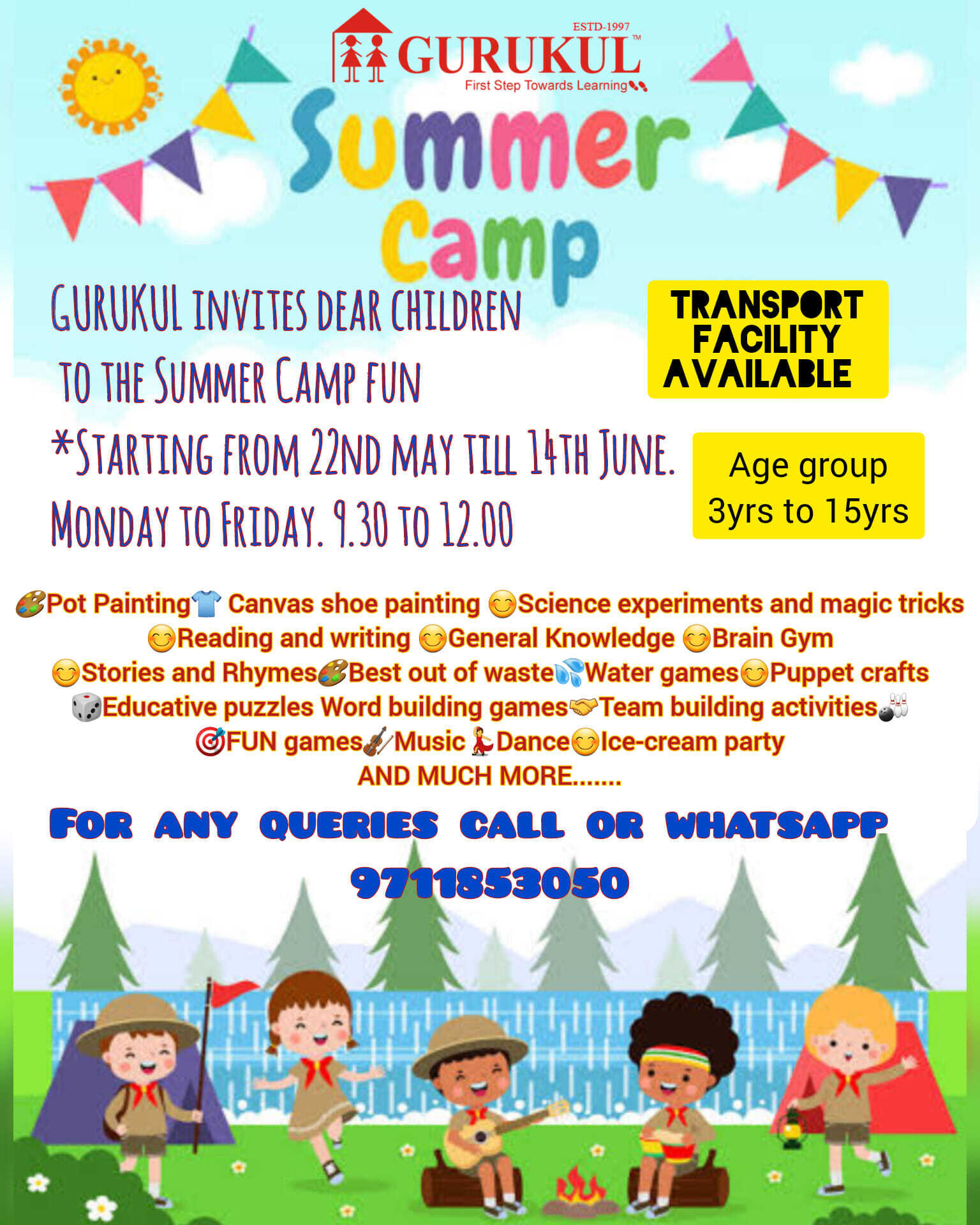 đ Summary: Explore a summer of creativity and learning at Gurukul's Summer Camp! From arts and crafts to science experiments, team-building activities, and fun games, thereâs something exciting for every child!