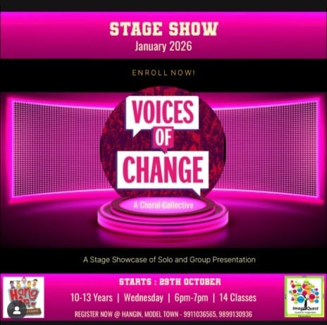 The journey begins on October 29th, with classes held every Wednesday from 6 PM to 7 PM at Model Town. Over the course of 14 classes, running until January 28th, 2026, children will develop their stage presence, vocal skills, confidence, and expressive abilities through theatrical speaking, rhythmic singing, and group performances.