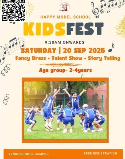 Join us at KidsFest by Happy Model School, A special event designed for children. This fun-filled day will feature exciting activities such as Fancy Dress, Talent Show, and Storytelling, giving little ones a wonderful platform to showcase their creativity and confidence. With a lively and engaging atmosphere, children will enjoy expressing themselves while parents cherish memorable moments.
