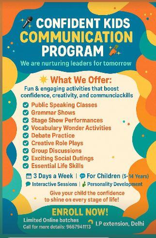 Help your child become a confident communicator and future leader! This fun and engaging program is designed for children aged 5 to 14 years and focuses on building communication, creativity, and essential life skills.