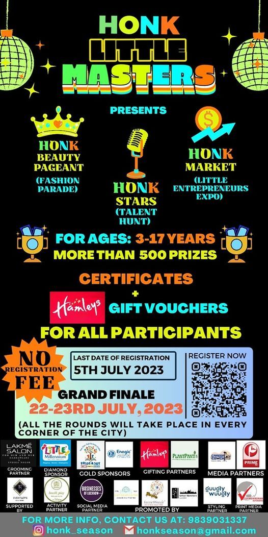 Join the Honk Little Masters event packed with exciting activities like a beauty pageant, talent hunt, and entrepreneurs expo designed for kids. Don't miss out on 500 amazing prizes and gift vouchers.