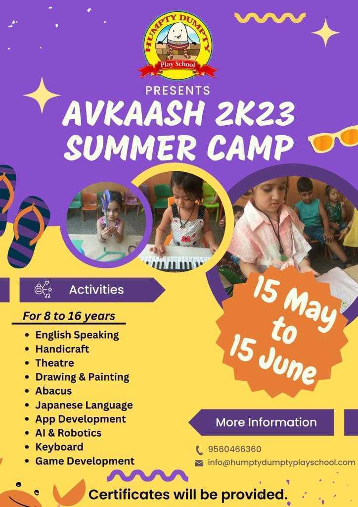 Humpty Dumpty Play School presents an exciting Summer Camp for Kids! Enroll your child today and watch them explore and grow in a fun-filled environment.