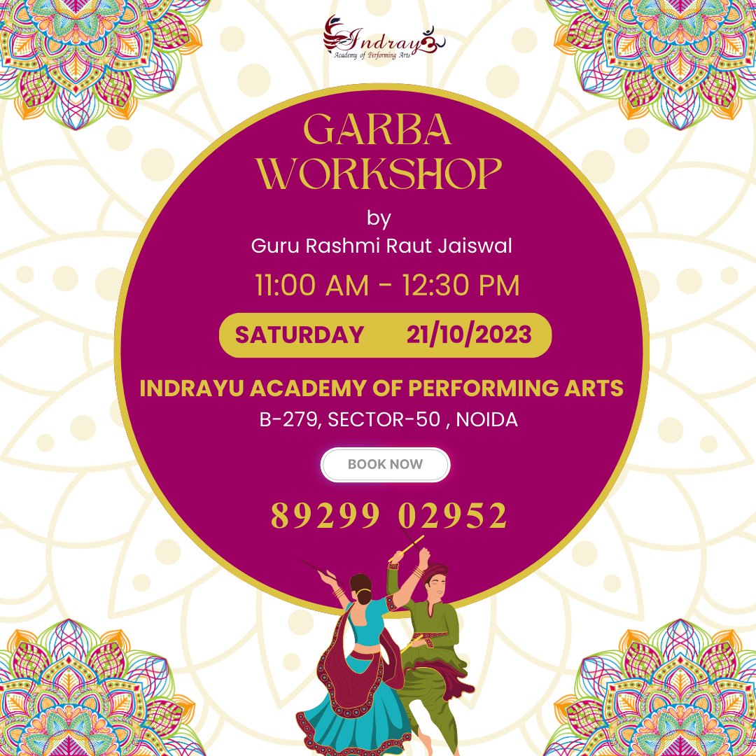 Summary: Join the exciting dance journey at Indrayu Academy with the GARBA WORKSHOP led by Guru Rashmi Raut Jaiswal! đ