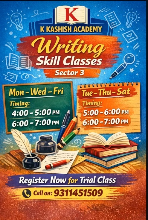 K Kashish Academy, offers comprehensive Writing Skill Classes designed to help students improve their writing abilities and gain confidence in expressing their ideas.
