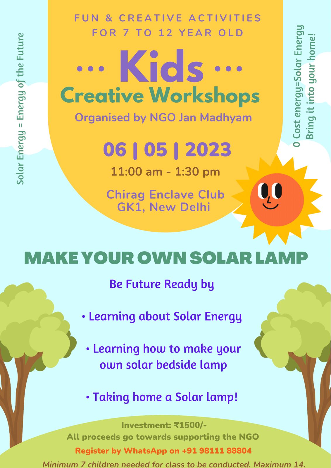 Summary: Explore the power of solar energy and build your own solar lamp at the Kids Creative Workshops by NGO Jan Madhyam.