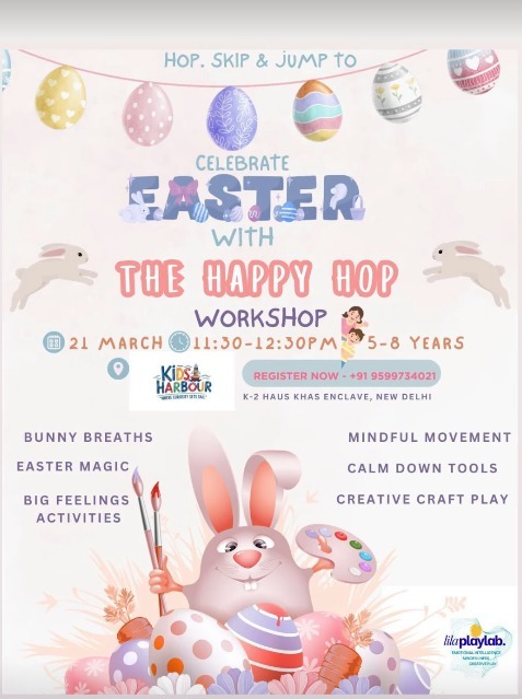 Designed for kids aged, the workshop includes activities such as bunny breaths, Easter-themed magic, big feelings activities, mindful movement, calm down tools, and creative craft play.The session encourages children to relax, express themselves, and enjoy the festive spirit through playful and interactive learning.