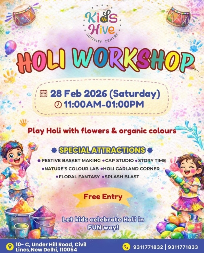 Join us at Kids Hive Activity Centre for a fun-filled Holi Workshop! Let children celebrate the festival of colors in a safe and eco-friendly way by playing with flowers and organic colors.