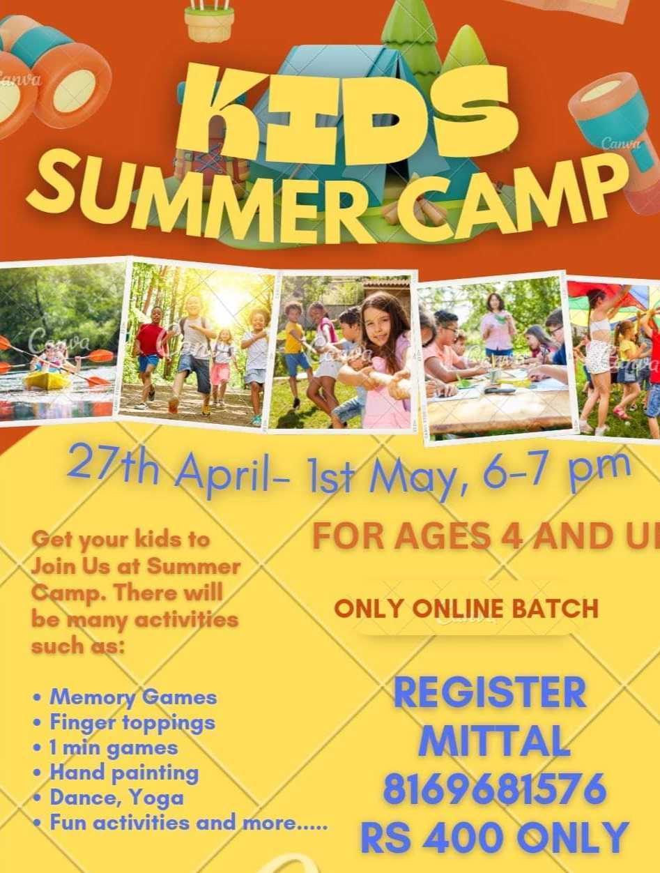 Kids Summer Camp Activities: đ§ Memory Games đ Finger Toppings â˛ď¸ 1 Min Games đ¨ Hand Painting đđ§ Dance, Yoga