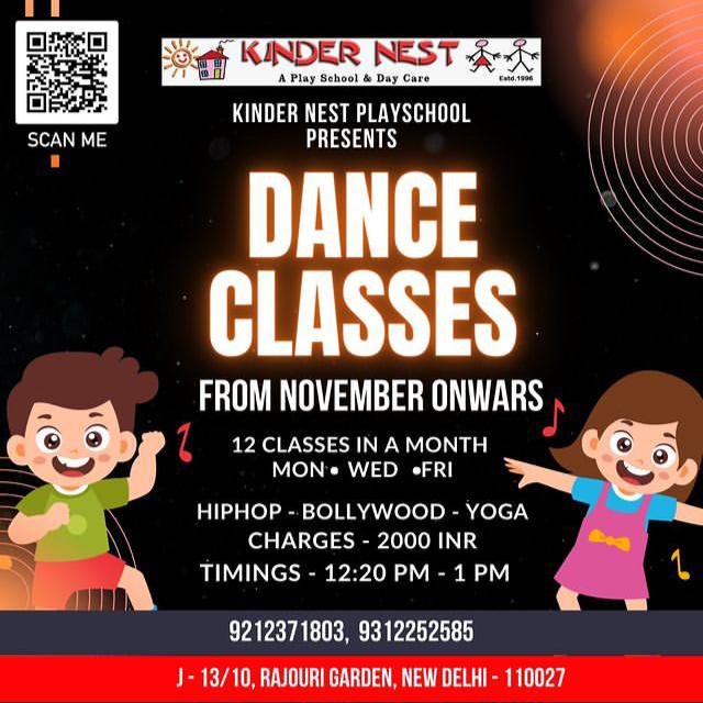 Summary: Enjoy a variety of dance classes at KinderNest Play School, featuring HIPHOP, BOLLYWOOD, and YOGA. đśđ§ââď¸ Twelve sessions are offered monthly to keep your kids active and engaged! đď¸đ§đŚ