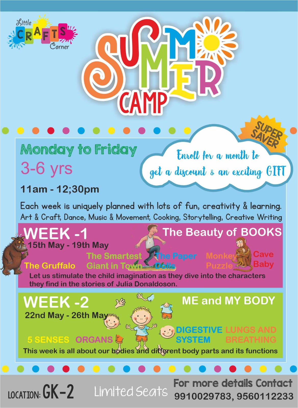 Summary: A summer camp at Little Crafts Corner packed with activities ranging from art and dance to storytelling and creative writing.