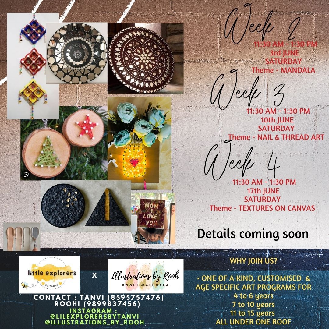 Explore weekly art themes like Mandala, Nail & Thread Art, and Textures On Canvas in a creative environment designed for kids! Enhance artistic skills and imagination.