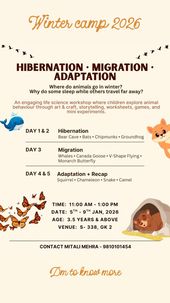 Join us for Winter Camp 2026: Hibernation, Migration, and Adaptation, a fascinating life science workshop designed for children aged 3.5 years and above. Over five engaging days, kids will explore how animals survive the winter season through interactive activities such as art & craft, storytelling, worksheets, games, and mini experiments.