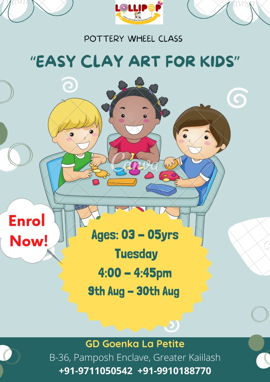 đ¸ Message: đ Don't miss out! Enroll your child in our Pottery Wheel Class today and let them discover the joy of clay art! đĄđ§đŚ Sign up now and let creativity blossom! đź