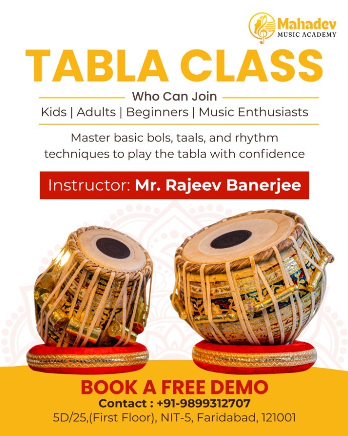 Under the guidance of instructor Rajeev Banerjee, students will learn basic bols, taals, and rhythm techniques to develop a strong foundation and play the instrument with confidence.The classes provide a structured and supportive environment for anyone interested in exploring Indian classical percussion.