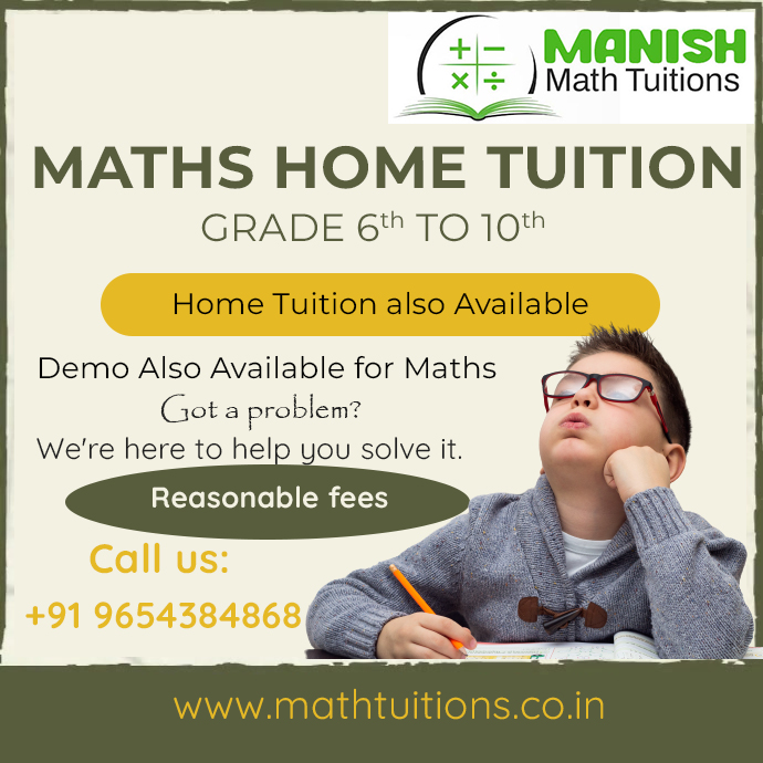 Manish Maths Tuition Classes Hosted Math Home Tuition For Kids Enroll Your Child Now Highlights đ GRADE 6th TO 10th đ Demo Also Available for Maths đ¤ Got a problem? đ We are here to help you solve it. đľ Reasonable fees