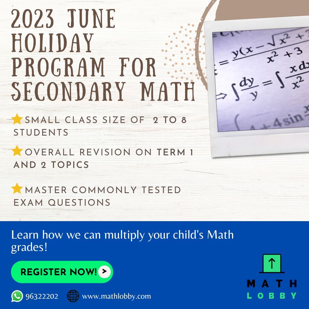 Summary: Unlock your child's math potential this holiday! đ Join our specially tailored secondary math program which focuses on intense revision and mastering exam questions.