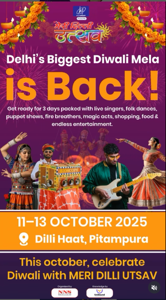 Meri Dilli Utsav, Delhi’s biggest Diwali Mela, brings three days of festive fun with music, dance, puppet shows, fire acts, magic, food, shopping, and endless entertainment a perfect way to celebrate the season of lights.