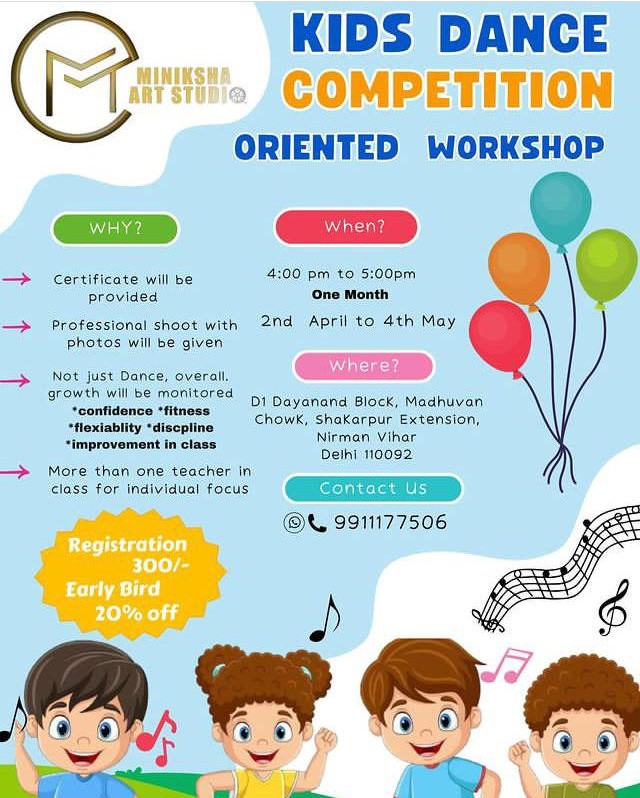 Summary: Join the Miniksha Art Studio's Kids Dance Competition to boost your child's confidence, fitness, and overall development through professional guidance and individual attention.