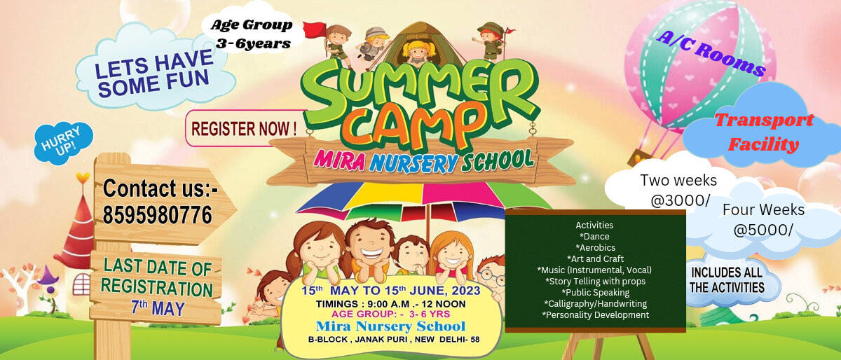 Experience a summer of growth and fun at Mira Nursery's Summer Camp. From dance and music to public speaking and personality development, there's something exciting for every child!