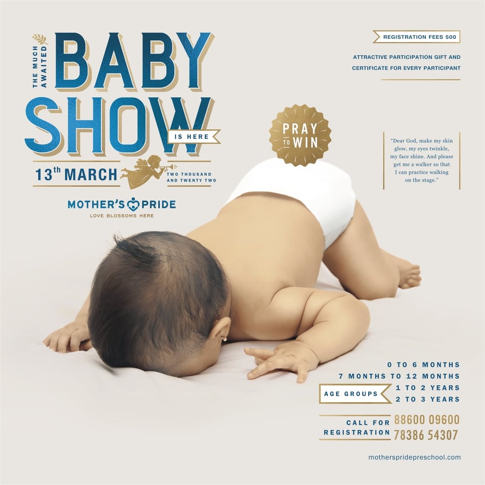 Enroll Now: Don't miss out! Enroll your child in Mother's Pride Baby Show today for fun, gifts, and the joy of participation. đâ¨