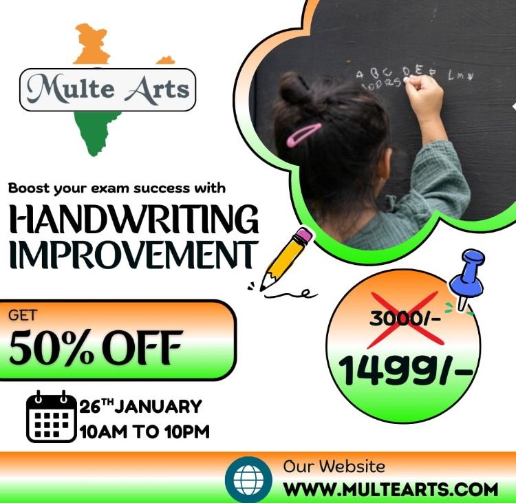 Summary: Enjoy a massive 50% discount đ on Handwriting Improvement Classes at Multe Arts, specially designed for kids. Celebrate Republic Day by investing in your child's education đ.